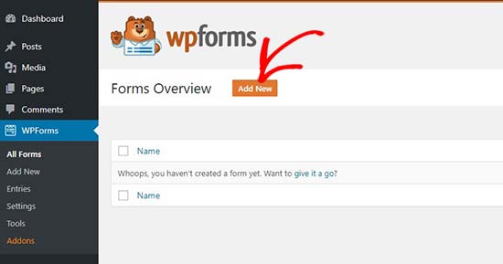 پس از فعال کردن افزونه به WPForms رفته و صفحه جدید فرم انتقادات و پیشنهادات  ایجاد کنید.