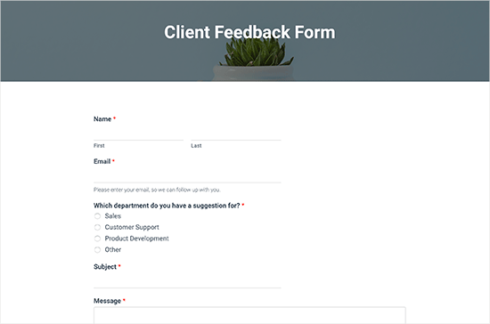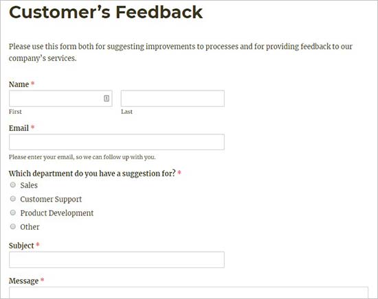 ما امیدواریم که این مقاله به شما کمک کند که یاد بگیرید چگونه به راحتی فرم انتقادات وپیشنهادات مشتری را در وردپرس اضافه کنید.
