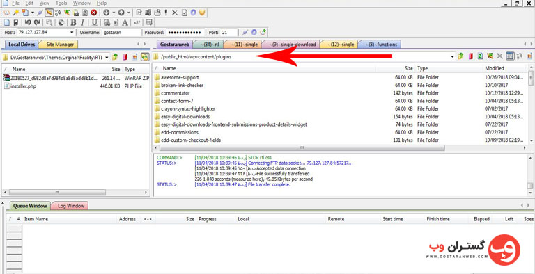 نکته(1): در صورت استفاده از FTP، ابتدا فایل فشرده را بر روی کامپیوتر خود extract کرده و سپس به آپلود فولدر مربوطه اقدام نمایید.
