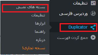 و بعد نصب و فعال سازی افزونه باید به قسمت Duplicator و زیر مجموعه بسته های نصبی رفت مانند تصویری که زیر می بینید :