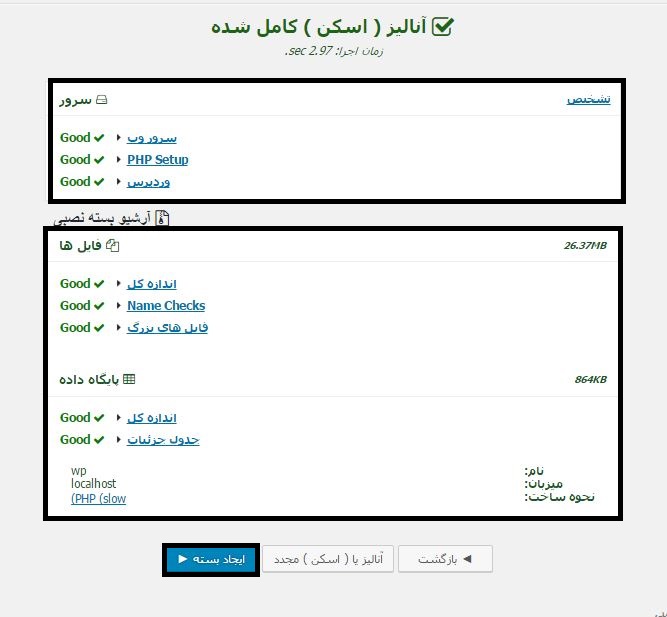 بعد از اسکن و پیدا کردن پوشه های قالب باید رفت به سوی صفحه ای که بتوانید ببیند که آیا بسته نصبی ما خطا یا ارور دارد یا نه برای یک همچنین مواردی اگر همه نوشته ها Good باشد یعنی خوب و اگر غیر از این باشد قسمتی از بسته نصبی شما مشکل دارد.