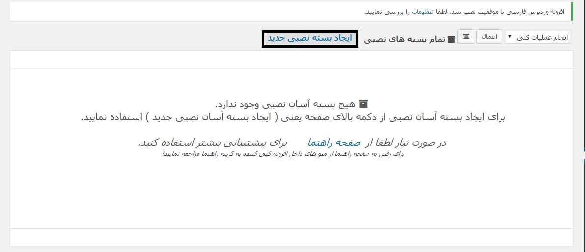 قدم دوم بعد از رفتن به قسمت بسته های نصبی یک صفحه مانند صفحه زیر برای شما نمایان نمی شود که باید بر روی ایجاد بسته نصبی کلیک کرد.
