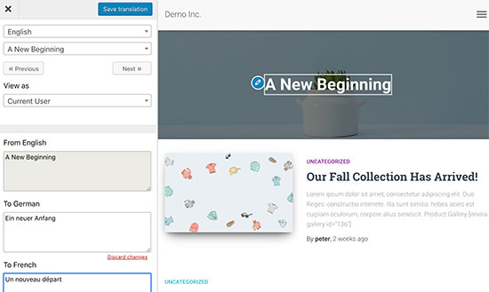 - شما می توانید وب سایت و محتوای خود را با استفاده از یک ویرایشگر با پیش نمایش واقعی هر صفحه در سایت خود ترجمه کنید .